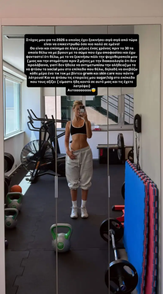 Πιο συγκεκριμένα, έγραψε: «Θα είναι και επίσημα σε λίγες μέρες ένας χρόνος πριν τα 30 τα οποία θέλω να με βρουν με το σώμα που έχω αποφασίσει και έχω φανταστεί ότι θέλω, με το να ξεκινήσω πάλι την ψυχοθεραπεία μου (μιας και την σταμάτησα πριν 2 μήνες με την δικαιολογία ότι δεν προλάβαινα, γιατί δεν ήθελα να αντιμετωπίσω την αλήθεια).