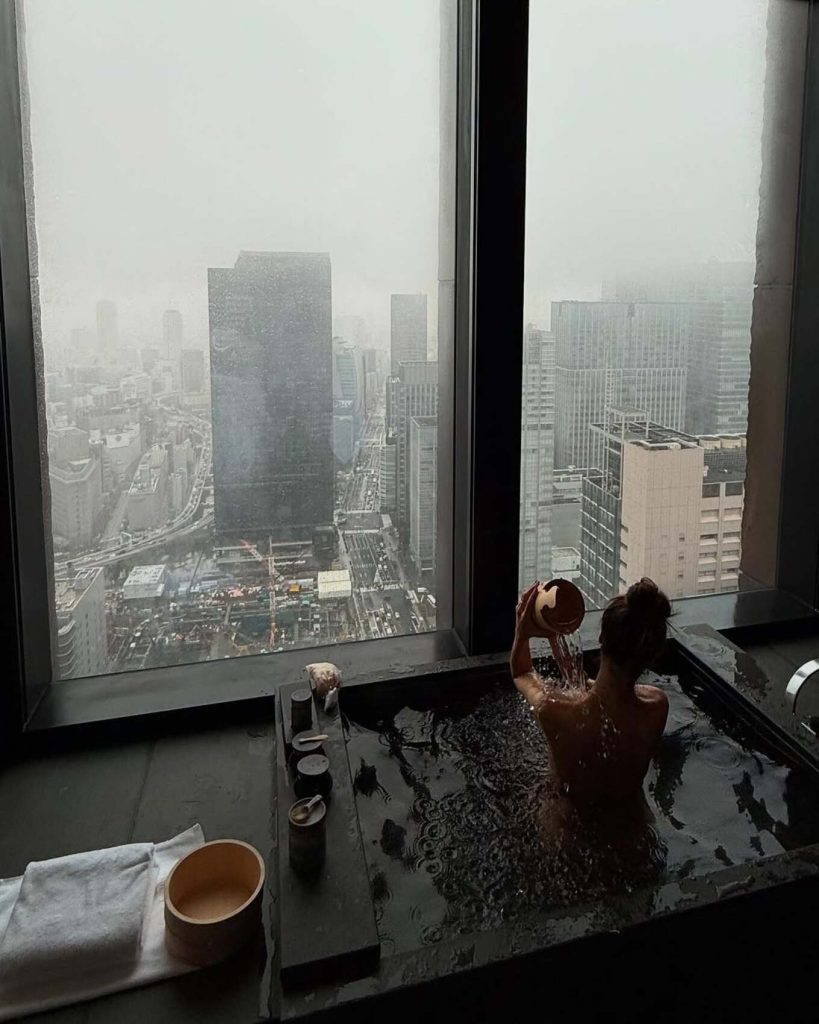 Ωστόσο, η φωτογραφία που προκάλεσε εντύπωση είναι αυτή που δείχνει την Αλεσάντρα Αμπρόσιο να ποζάρει γυμνή μέσα σε ένα τζακούζι, με θέα ολόκληρη την πόλη.