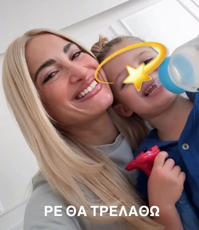 Σε ένα από τα στιγμιότυπα ετοιμάζει τον γιο της και τον προτρέπει να πει «καλημέρα». Η Ιωάννα Τούνη κάτω από το story της έγραψε «Ρε θα τρελαθώ».