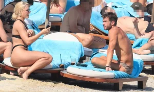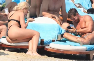 Ο φωτογραφικός φακός την εντόπισε σε στιγμές χαλάρωσης σε beach bar της Ψαρρούς – της πιο κοσμικής παραλίας του νησιού.