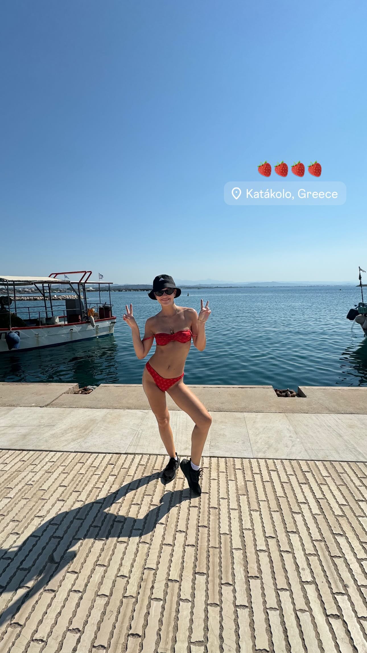 Βίντεο από τον περίπατό της, μοιράστηκε μέσω Instagram story ενώ αργότερα, ανέβασε και σχετικό στιγμιότυπο, στο οποίο ποζάρει μπροστά από το λιμάνι, σχηματίζοντας το σήμα της νίκης με τα χέρια της.