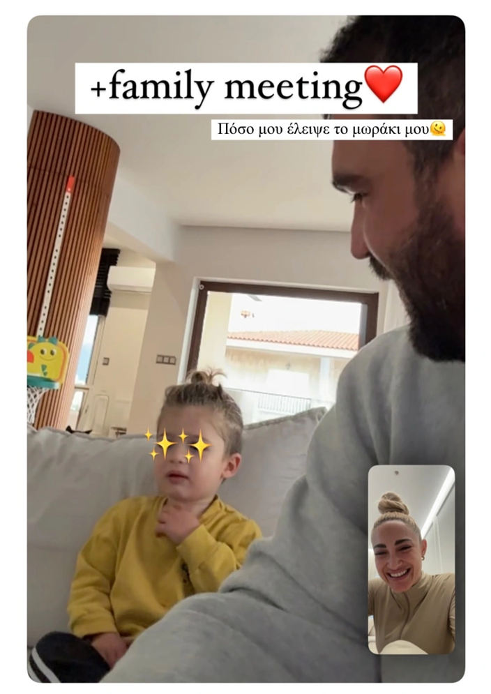 Παράλληλα η Ιωάννα Τούνη ανήρτησε στα stories της και μια φωτογραφία από βιντεοκλήση με τον Δημήτρη Αλεξάνδρου και τον γιο τους, Πάρη.