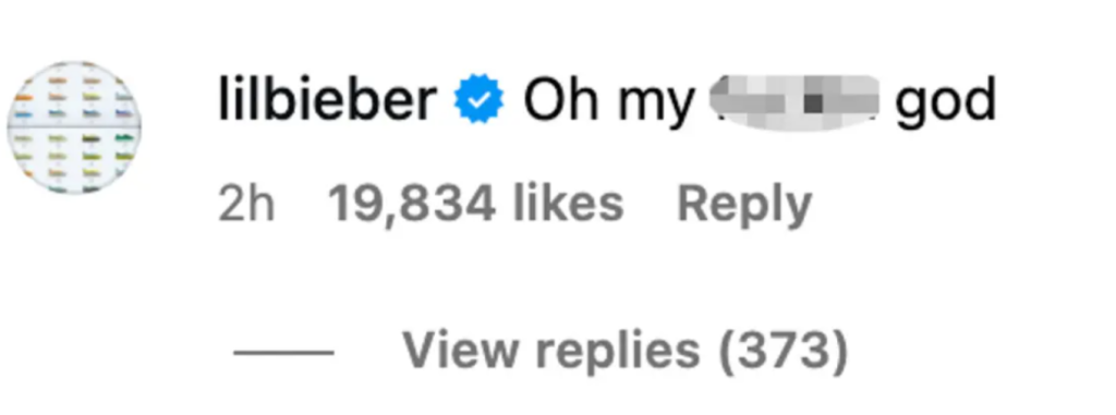Τα σχόλια για την ανάρτηση της Χέιλι Μπίμπερ ήταν αποθεωτικά με πρώτο τον Τζάστιν Μπίμπερ να γράφει «ω, Θεέ μου».