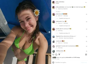 Αυτή τη φορά, ανάρτησε μερικές φωτογραφίες, σε κάποιες από τις οποίες ποζάρει με ένα λαχανί μπικίνι, ενώ σε άλλες, έδειξε στο κοινό της το τοπίο.