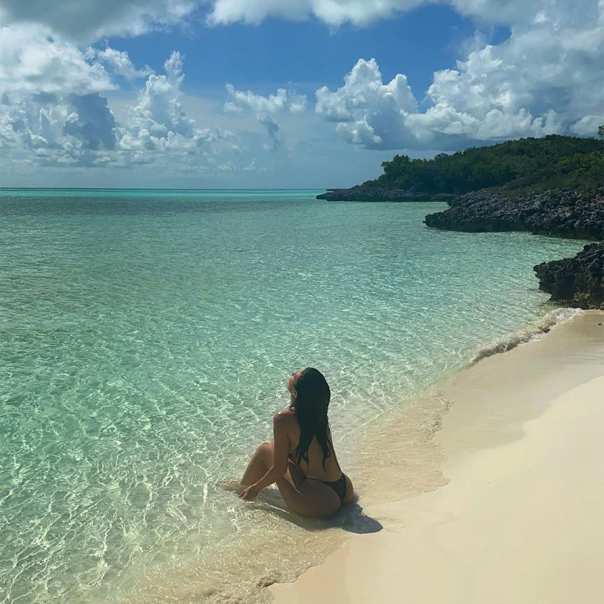 Για τις φωτογραφίες για τα γενέθλιά της η Κάιλι Τζένερ επέλεξε ένα μαύρο σέξι μαγιό απολαμβάνοντα τα καταγάλανα νερά μιας παραλίας.
