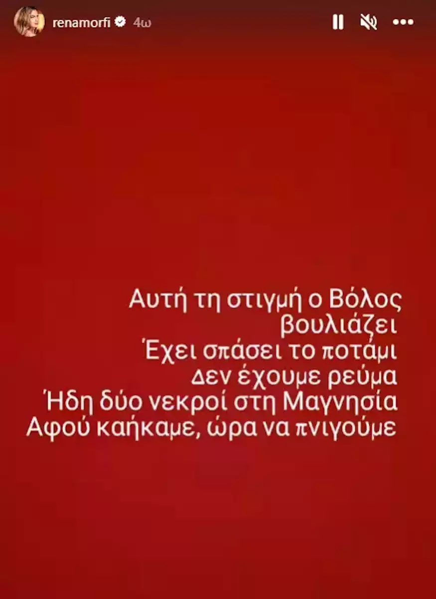 Σε μία ανάρτηση – «κόλαφο» προχώρησε η γνωστή τραγουδίστρια, Ρένα Μόρφη, η οποία σχολίασε τη δραματική κατάσταση που επικρατεί στον Βόλο.