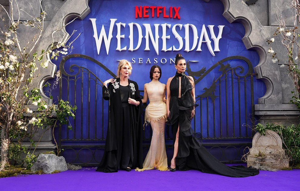 Η Κάθριν Ζέτα Τζόουνς και η Τζένα Ορτέγκα εμφανίστηκαν στην εκδήλωση που διοργανώθηκε με σκοπό την κυκλοφορία της 2ης σεζόν της σειράς του Netflix «Wednesday», στο οποίο συμπρωταγωνιστούν.