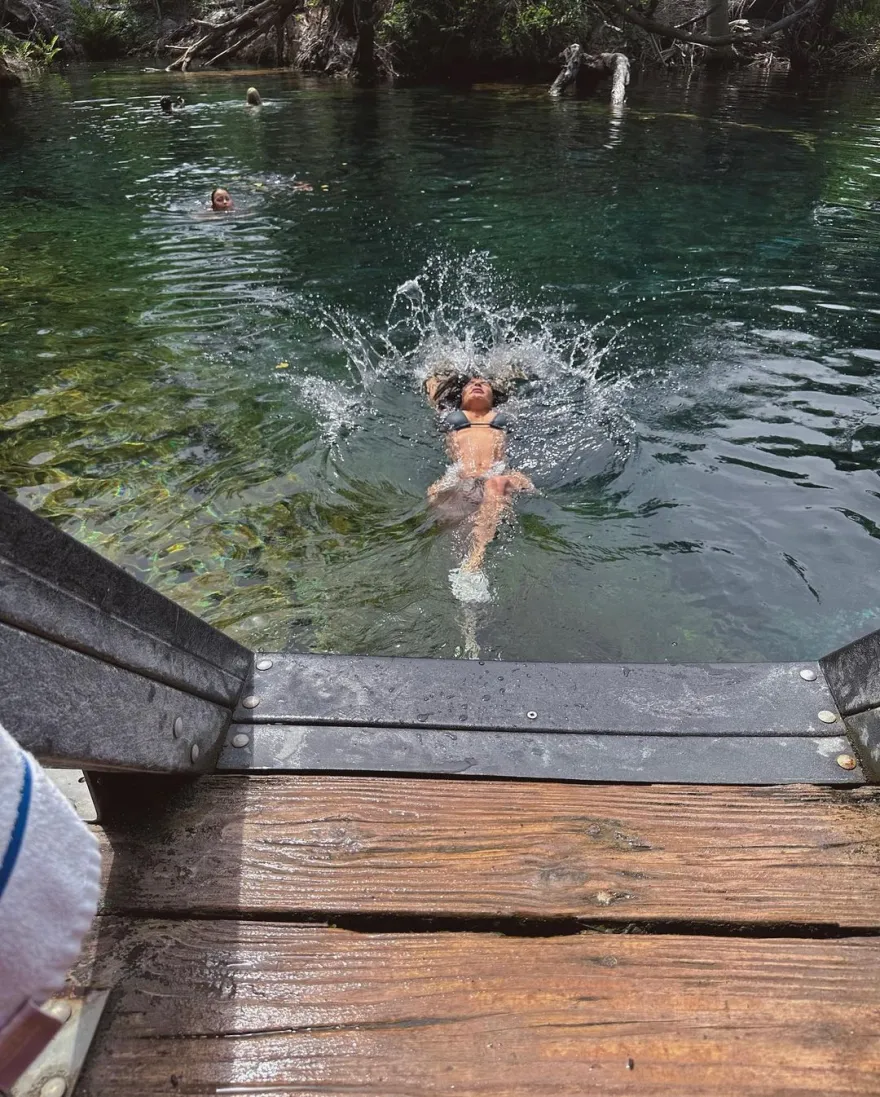 Συγκεκριμένα, δημοσίευσε μια σειρά από στιγμιότυπα, που τη δείχνουν να βουτά σε ένα ποτάμι, φορώντας ένα μαύρο μπικίνι.