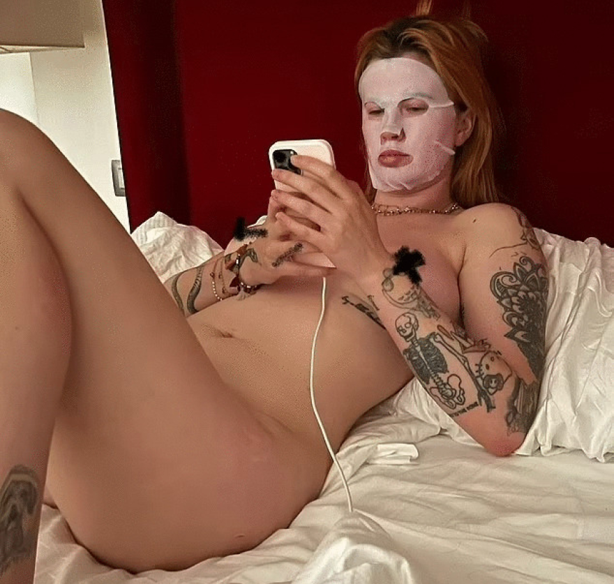 Ξάπλωσε στο κρεβάτι και με μία λευκή μάσκα προσώπου, που αναζωογονεί το δέρμα της, απαθανατίστηκε χωρίς να αφήνει τίποτα στη φαντασία.