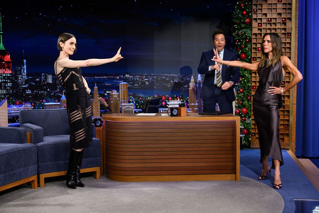 Η 36χρονη πρωταγωνίστρια του «Emily in Paris» αντέδρασε με δάκρυα στα μάτια, όταν σε ζωντανή εμφάνισή της στο «Tonight Show Starring Jimmy Fallon», βρέθηκε ξαφνικά δίπλα στη γυναίκα που θαύμαζε από μικρή, τη Βικτόρια Μπέκαμ.