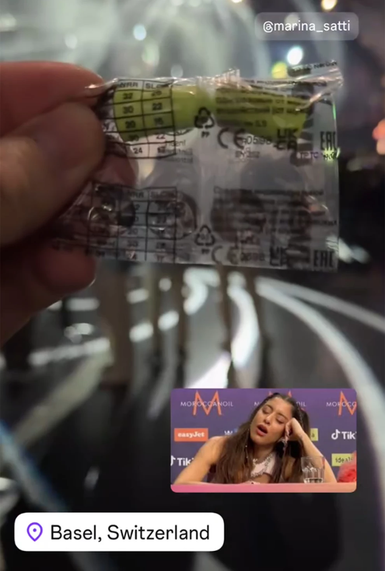 Λίγο αργότερα, ο Γιανίβ Ντορνμπούς τη συνάντησε να τραγουδά σε πάρτι του Euroclub και ανέβασε story στο Instagram, ειρωνευόμενος την περσινή της στάση στη συνέντευξη Τύπου του Β’ Ημιτελικού – τότε που η Μαρίνα Σάττι είχε χασμουρηθεί την ώρα που μιλούσε η Ισραηλινή εκπρόσωπος Eden Golan.