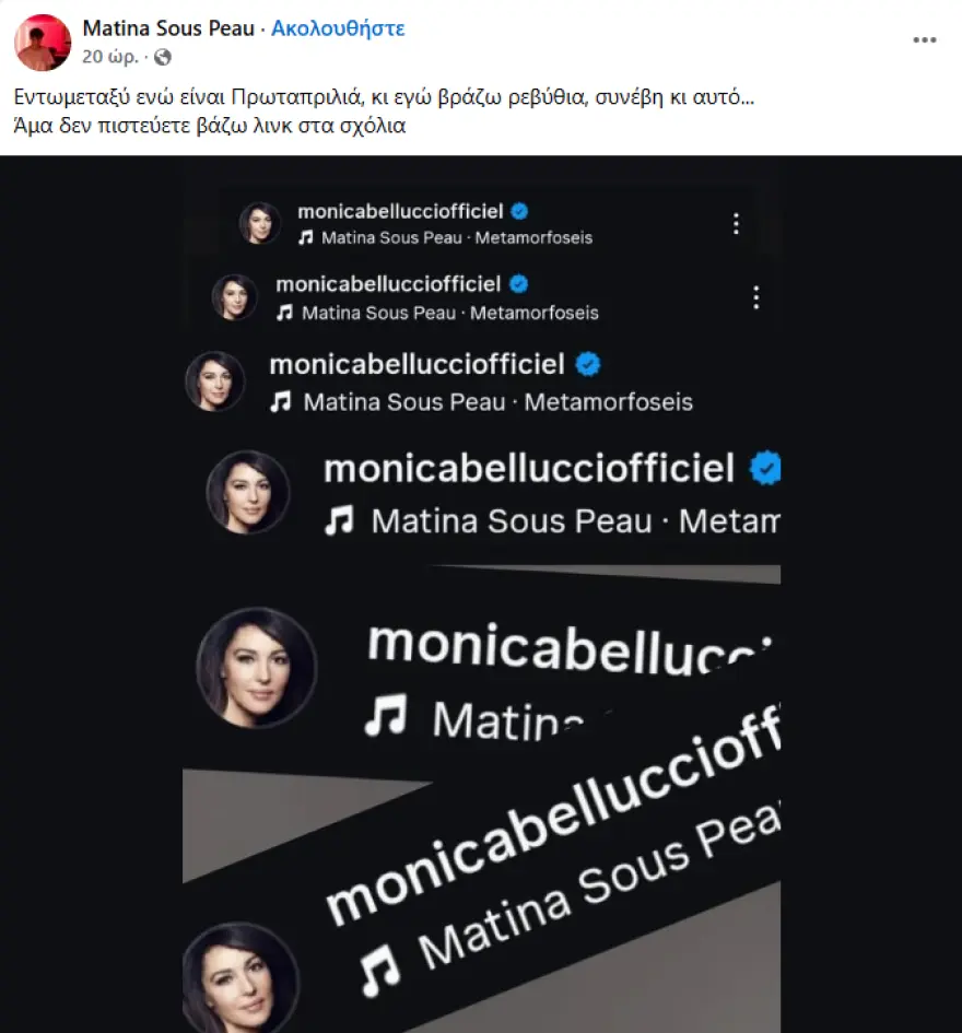 Η Μόνικα Μπελούτσι προχώρησε σε μια ανάρτηση στο Instagram, επιλέγοντας να τη συνοδεύσει με τραγούδι του Βλάσση Μπονάτσου.