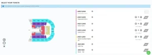 Τα μπροστινά καθίσματα (Diamond A+B) κοστίζουν 3.500 aed, οι θέσεις Gold A+B 2.000 aed, οι θέσεις Silver (Coctail table) 1.300 aed και οι θέσεις Gold Tier 800 aed και Silver Tier 600 aed. Στο σχεδιάγραμμα θα δεις που βρίσκονται οι θέσεις. Υπόψιν το νόμισμα των αραβικών εμιράτων είναι το ντιρχάμ (aed). Τα 3.500 aed είναι περίπου 870 ευρώ, τα 2.000 aed, 495, 62 ευρώ, τα 1.300 aed 324 ευρώ, τα 800 aed, 198 ευρώ και τα 600 aed περίπου 150 ευρώ.