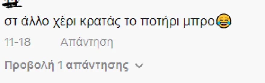«Τι κρατάει ακριβώς στο χέρι;» γράφουν στο βίντεο. «Στο άλλο χέρι κρατάς το ποτήρι» πρόσθεσε ένας άλλος. Ορισμένοι χρήστες της πλατφόρμας άνοιξαν συζήτηση σχετικά με το αν κρατάει κάτι, που δεν φαίνεται στην κάμερα. Οι περισσότεροι, ωστόσο, κατέληξαν στο ότι ο ίδιος απλά είχε ξεχαστεί και νόμιζε πως κρατούσε το ποτήρι του.