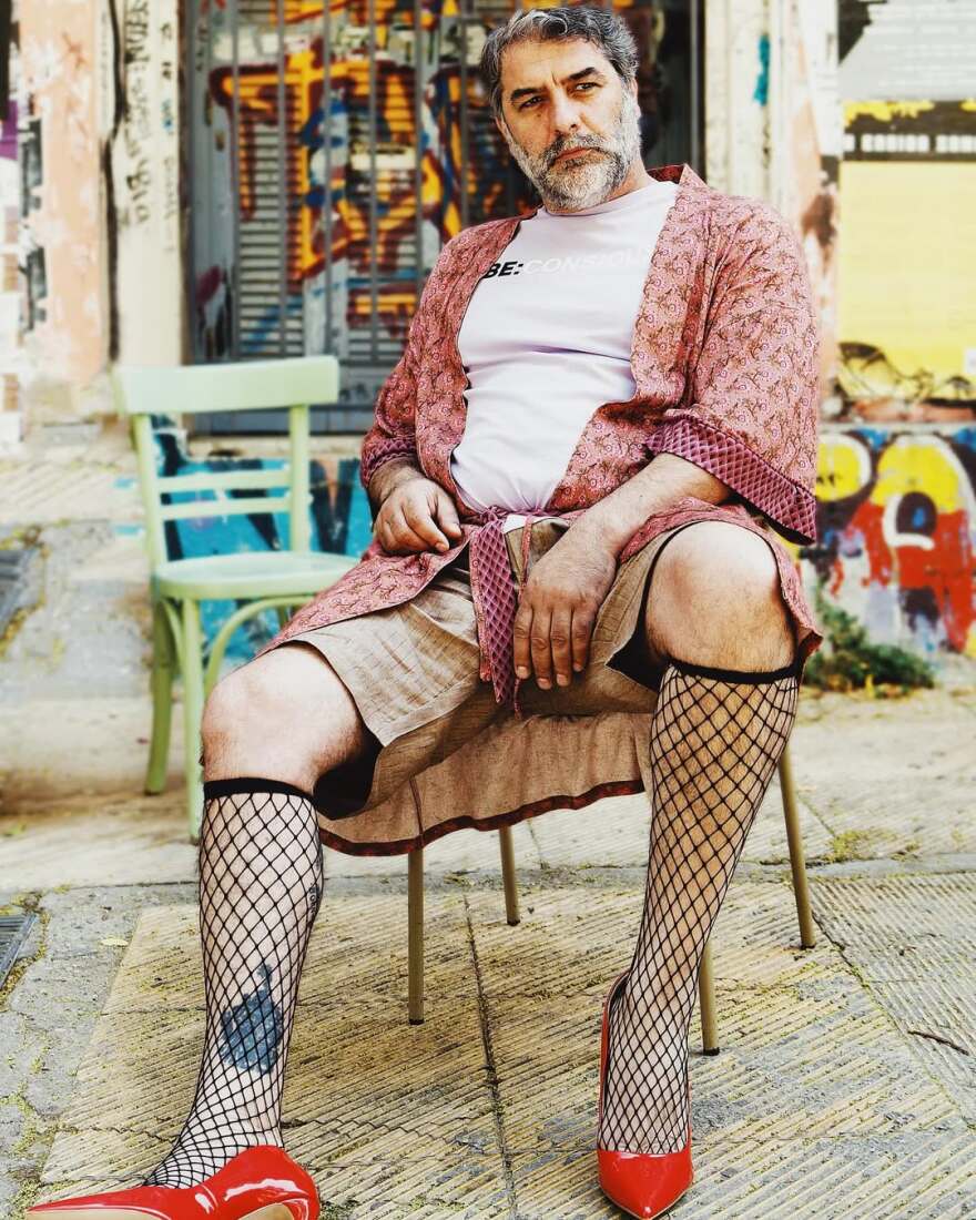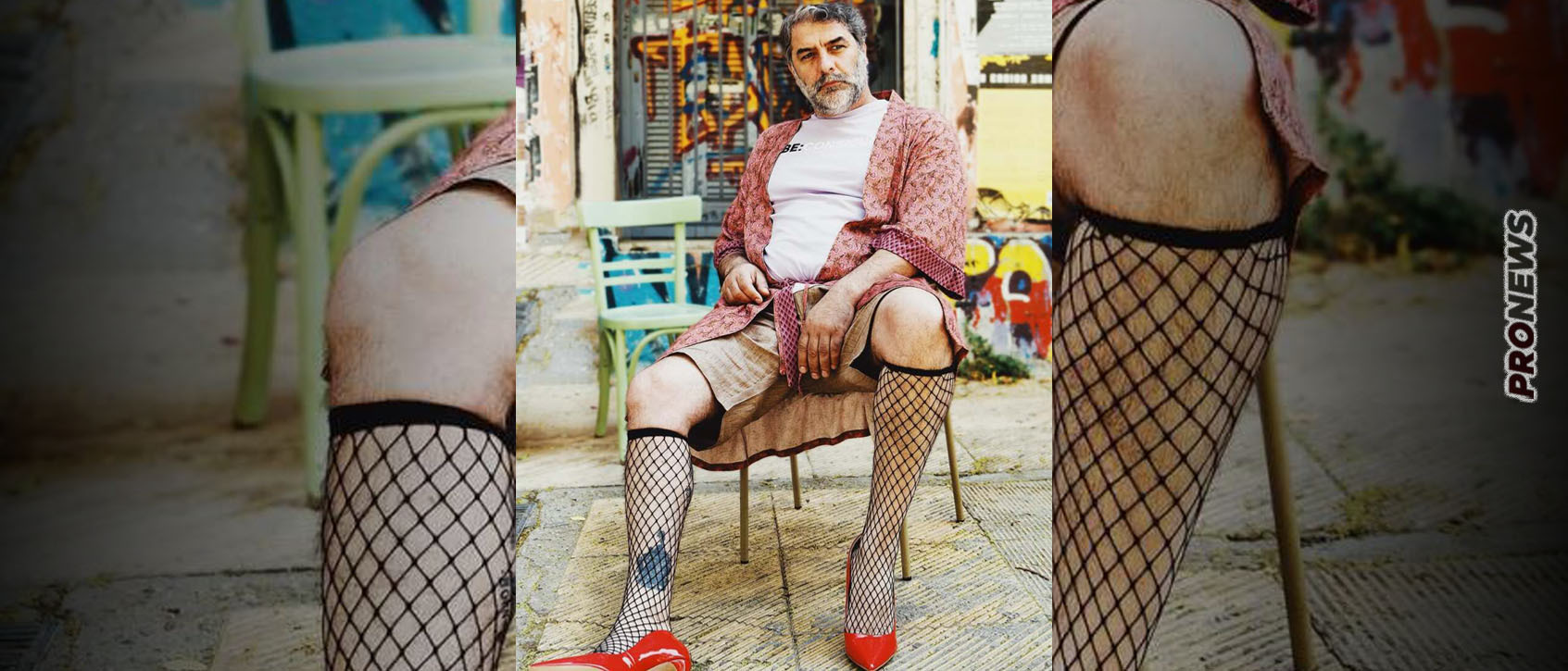 Φωτογράφηση με διχτυωτές κάλτσες και κόκκινες γόβες έκανε ο γνωστός ηθοποιός και σύντροφος της Δέσποινας Βανδή, Βασίλης Μπισμπίκης.