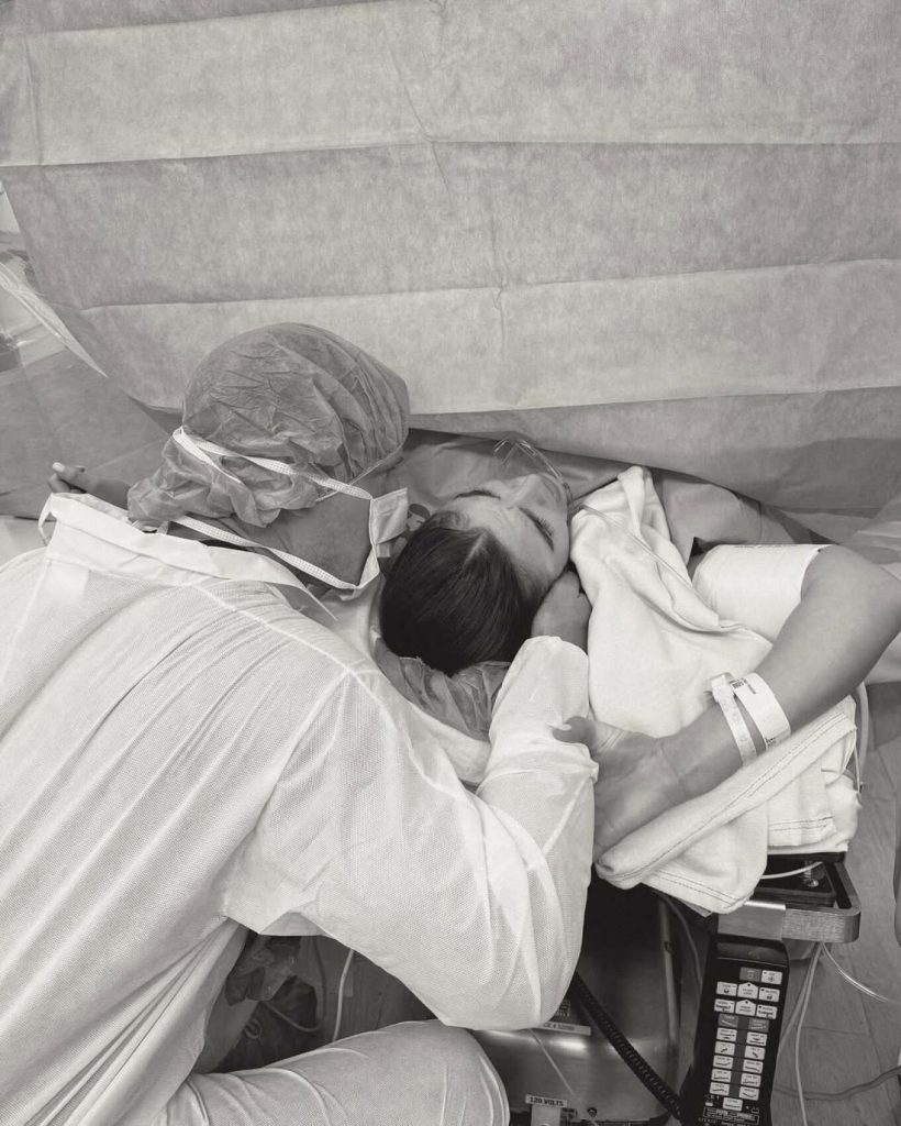 «Η Κολέτ είναι τόσο τυχερή που έχει τον καλύτερο μπαμπά στον κόσμο», έγραψε η νέα μαμά σε Instagram Story, ενώ μοιράστηκε και μια πιο προσωπική εικόνα από τη στιγμή του τοκετού, με την ίδια να κρατά σφιχτά το χέρι του ΜακΚάφρι.