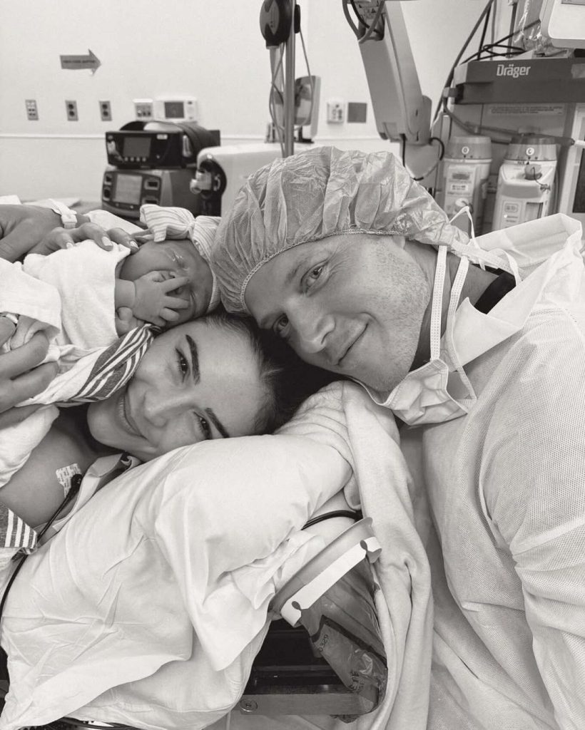 Η 32χρονη ανάρτησε μια σειρά από ασπρόμαυρες φωτογραφίες που τραβήχτηκαν στο μαιευτήριο, με την ίδια και τον παίκτη του NFL να ποζάρουν δίπλα στο νεογέννητο.