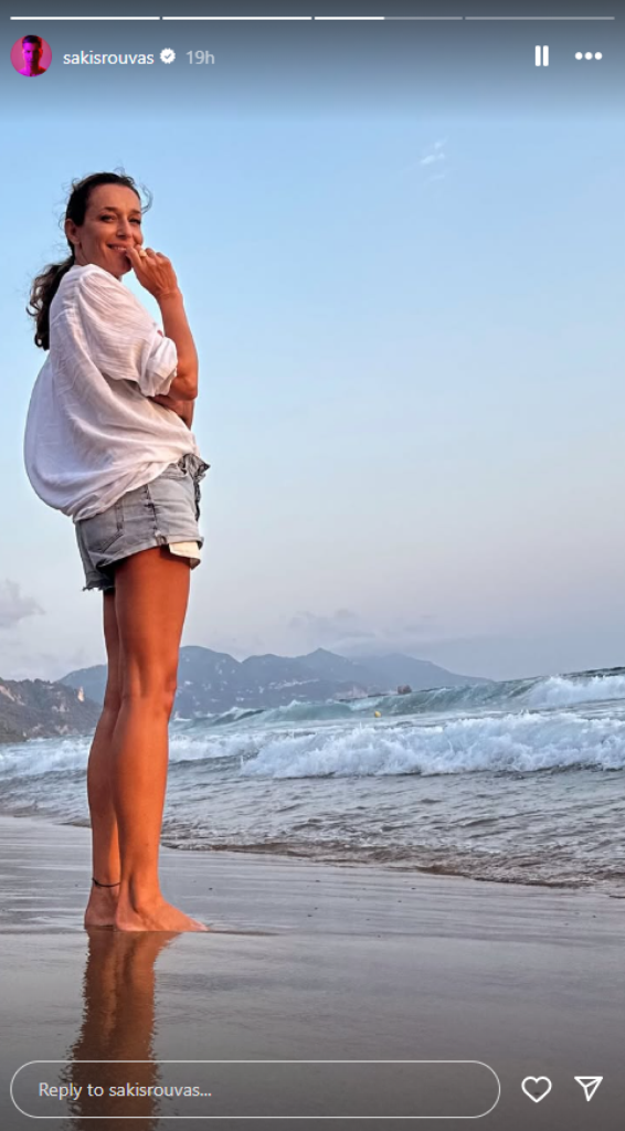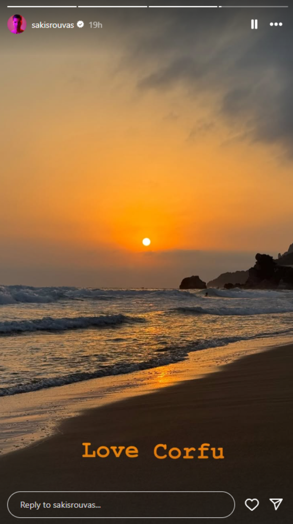Το ζευγάρι απόλαυσε και το ηλιοβασίλεμα στην ίδια παραλία, καθώς ο Σάκης Ρουβάς ανάρτησε ένα δεύτερο στιγμιότυπο στο Instagram γράφοντας «αγαπώ την Κέρκυρα».