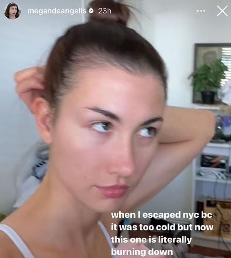 Οργή προκάλεσε η ανάρτηση της 29χρονης YouTuber Μεγκ ΝτεΆντζελις από τον Καναδά για τη φωτιά στο Λος Άντζελες, καθώς έγραψε στη λεζάντα της selfie που ανάρτησε πως «έφυγα από τη Νέα Υόρκη γιατί έκανα κρύο αλλά τώρα εδώ καίγονται όλα».