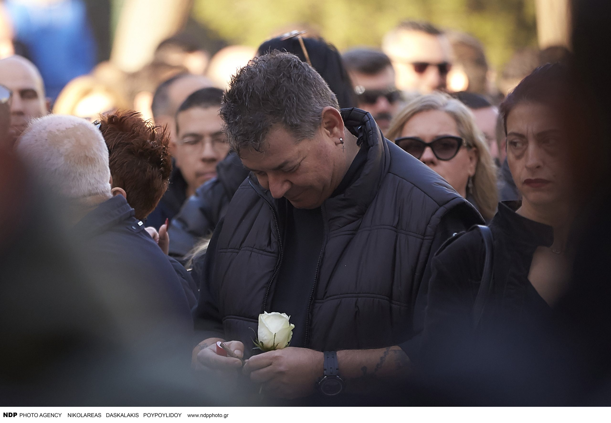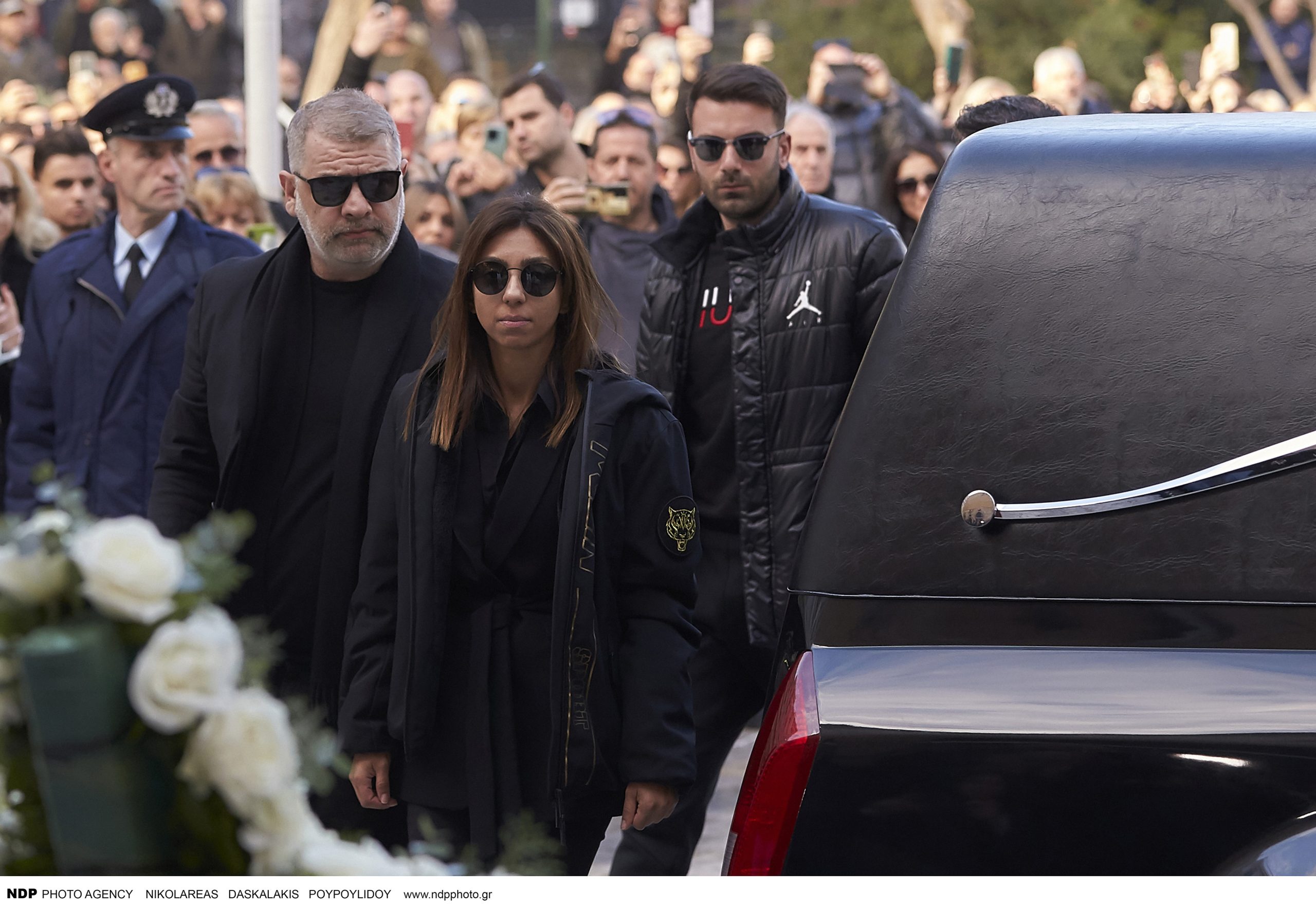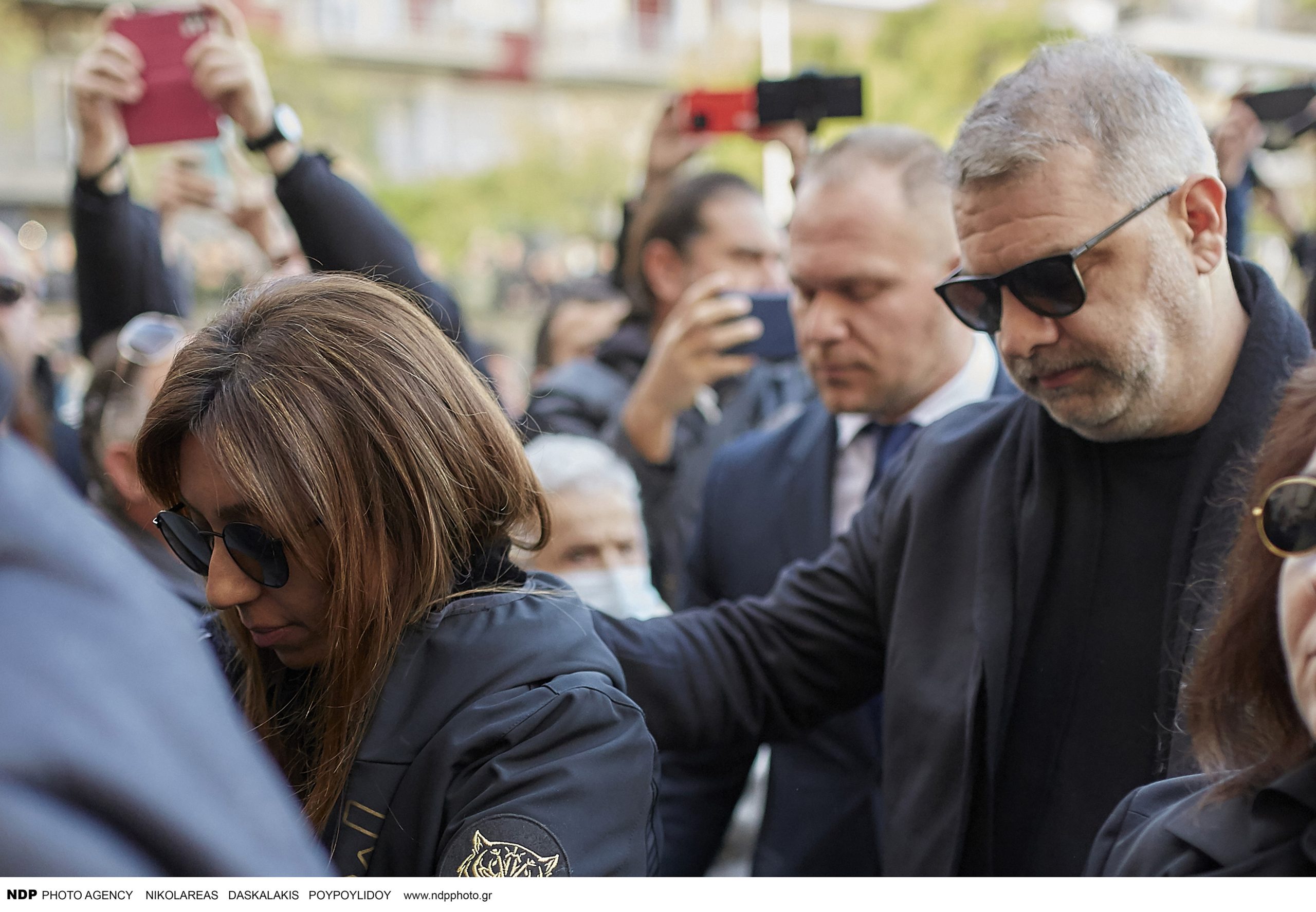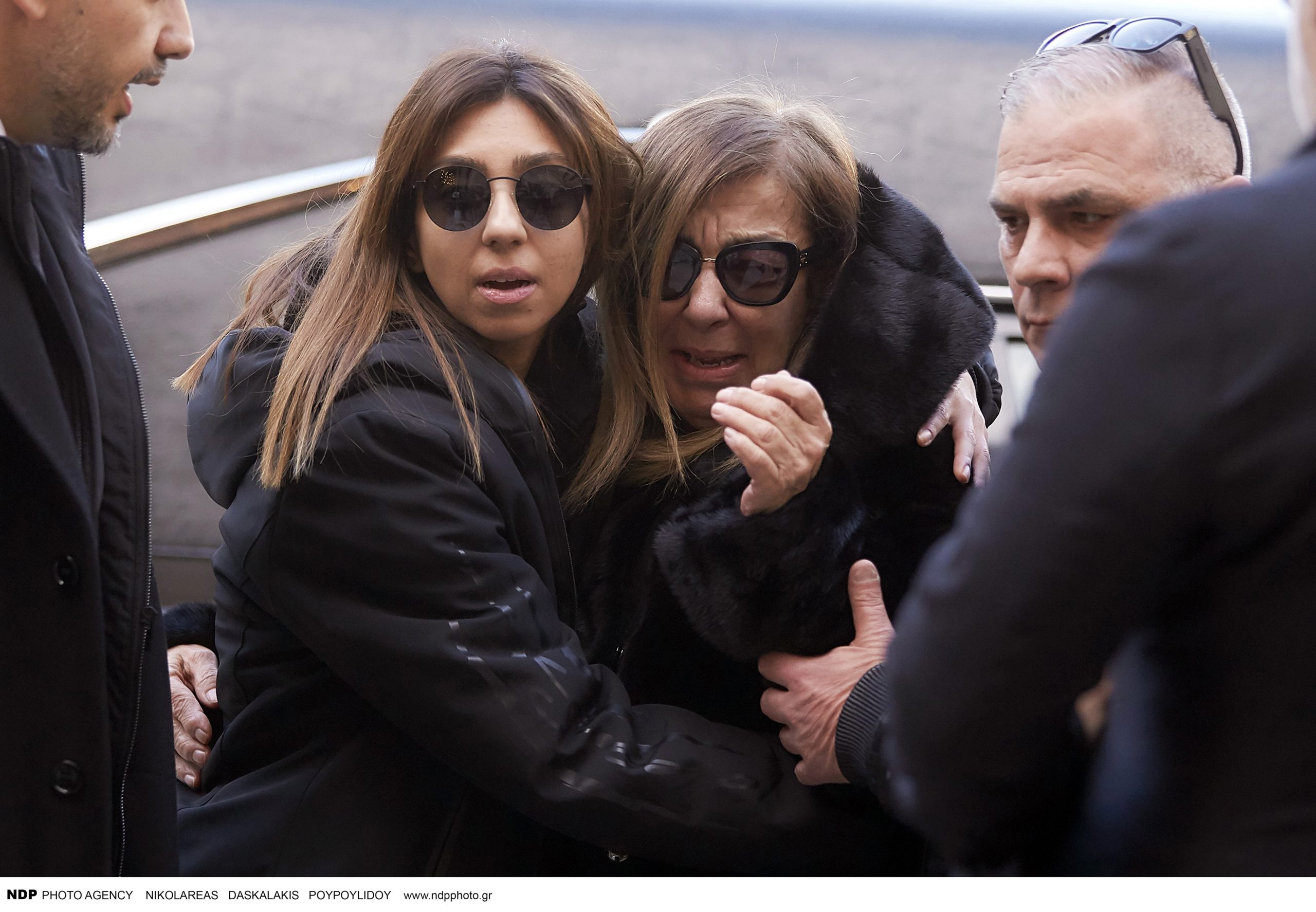 Η οικογένεια του λαϊκού τραγουδιστή έφτασε αγκαλιασμένη στον Ιερό Ναό, με τη σύζυγό του, την κόρη του και τον αδερφό του, τραγικές φιγούρες, να δίνουν δύναμη ο ένας στον άλλο.