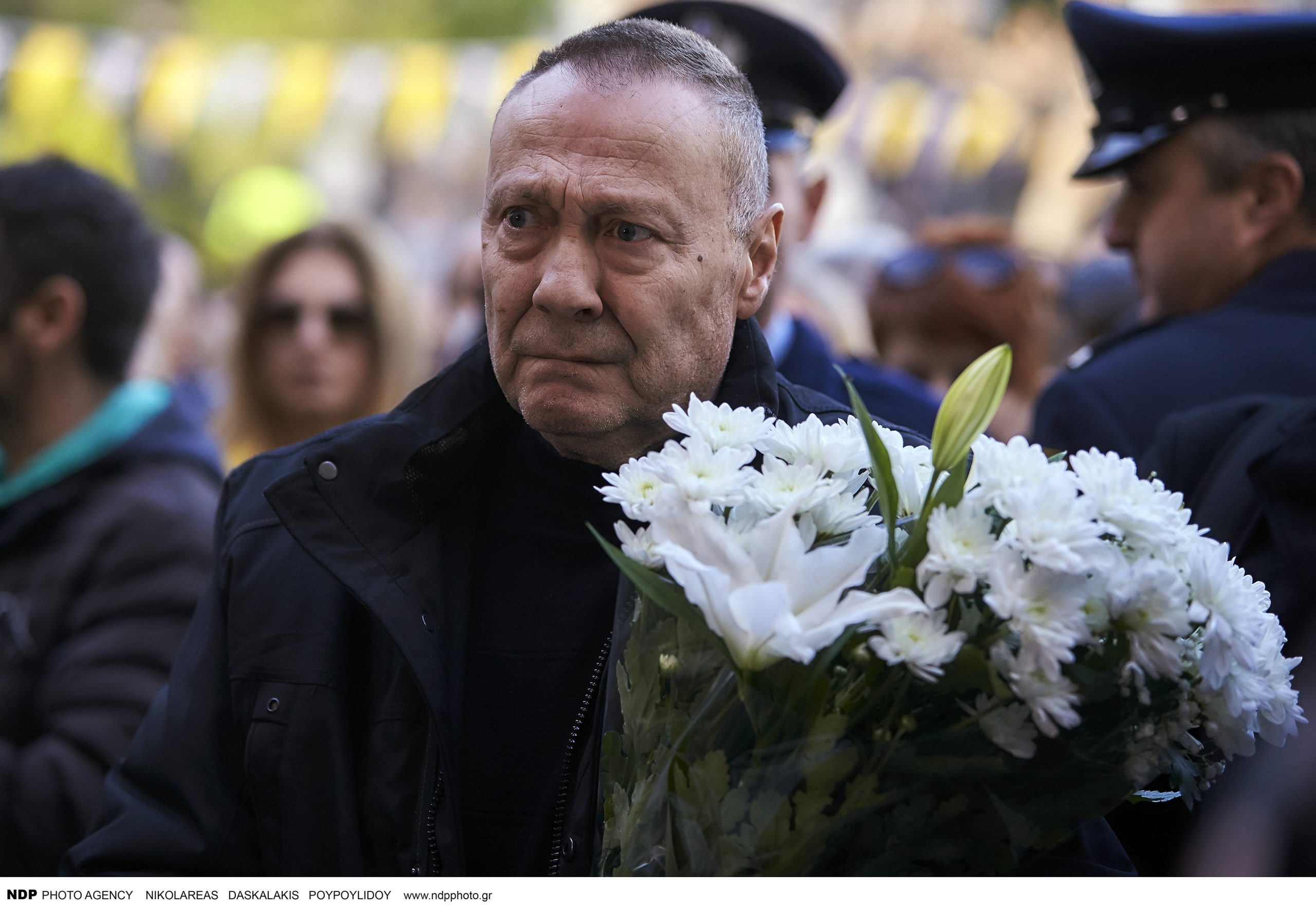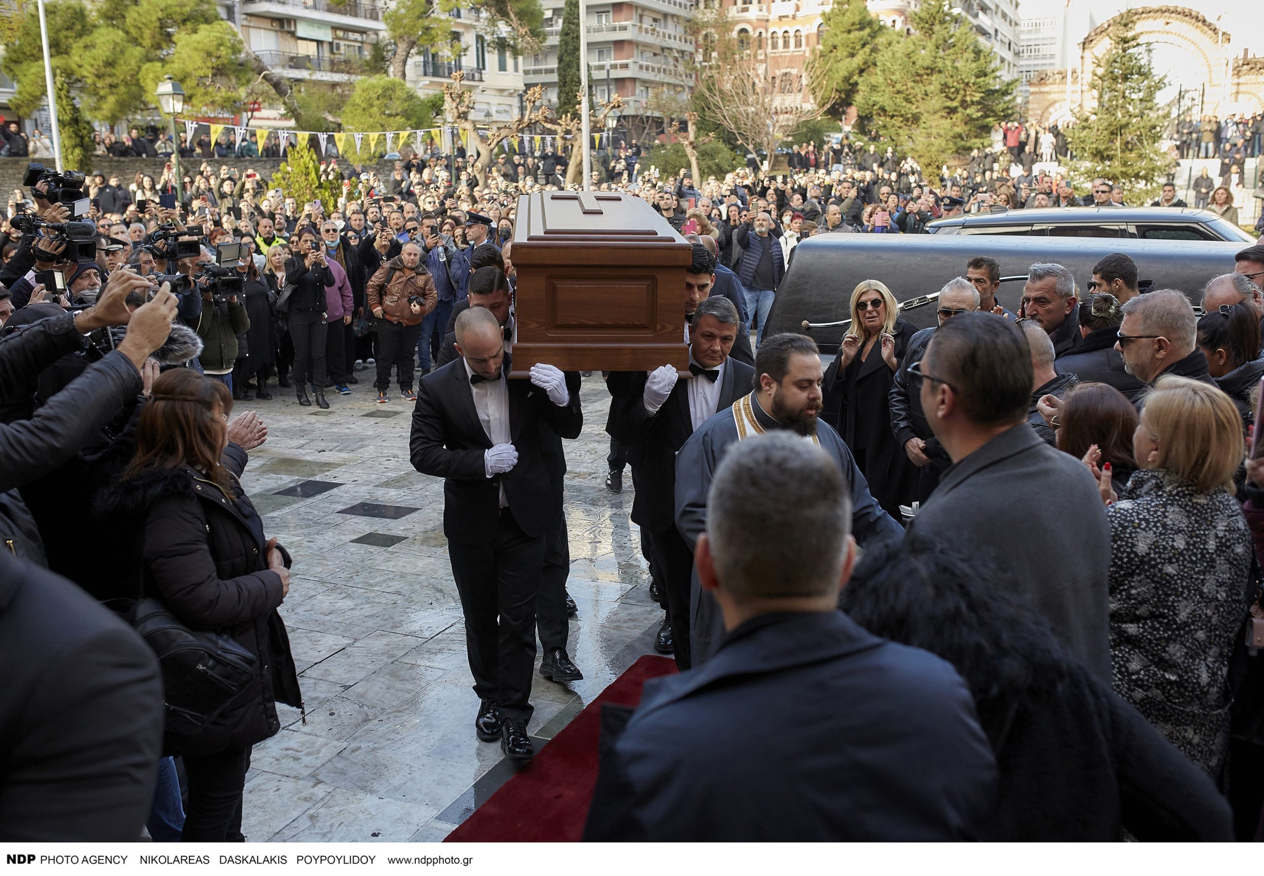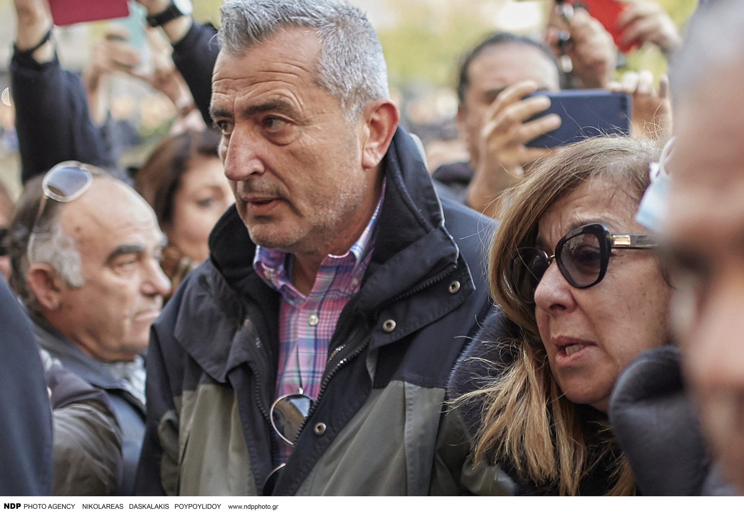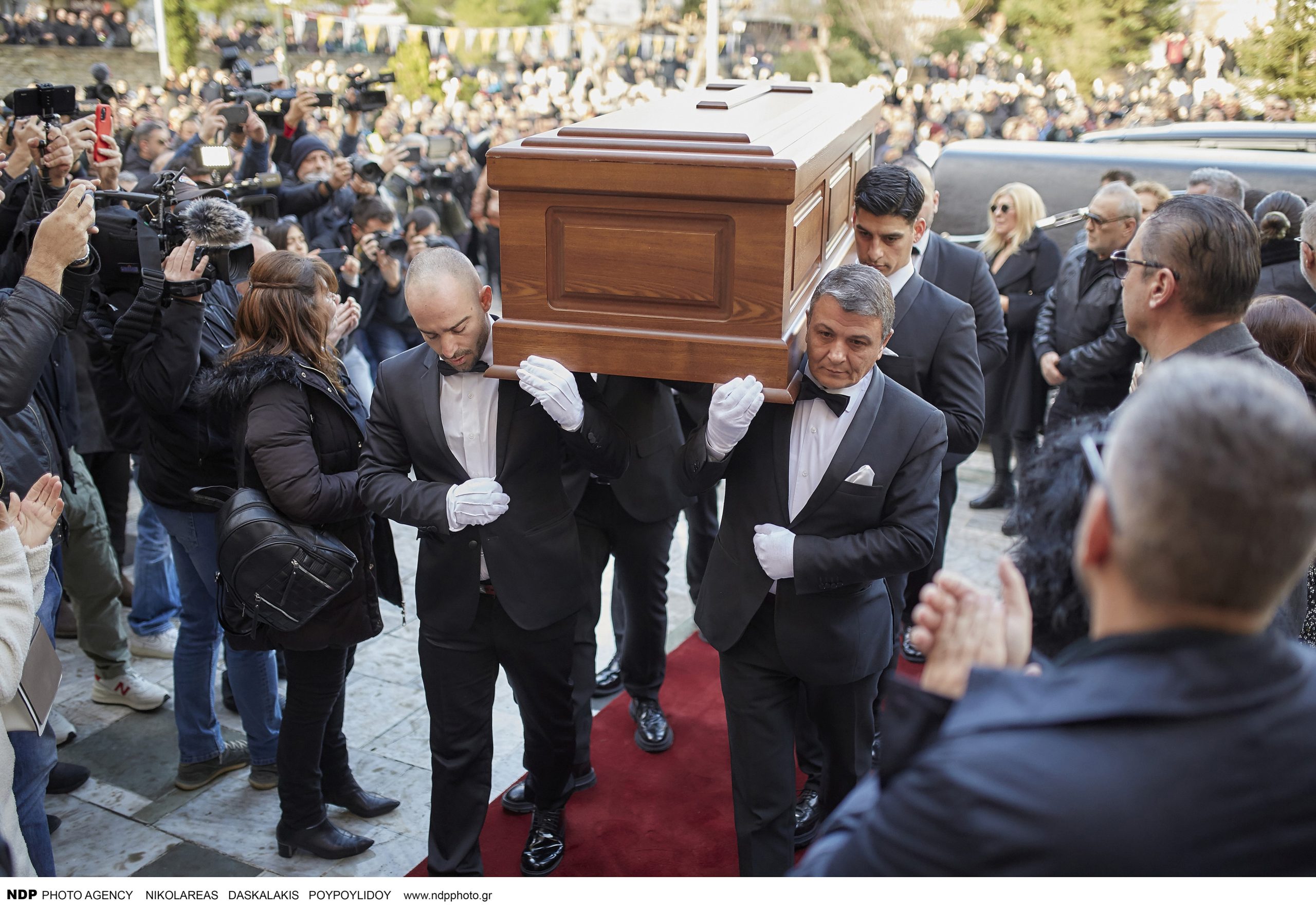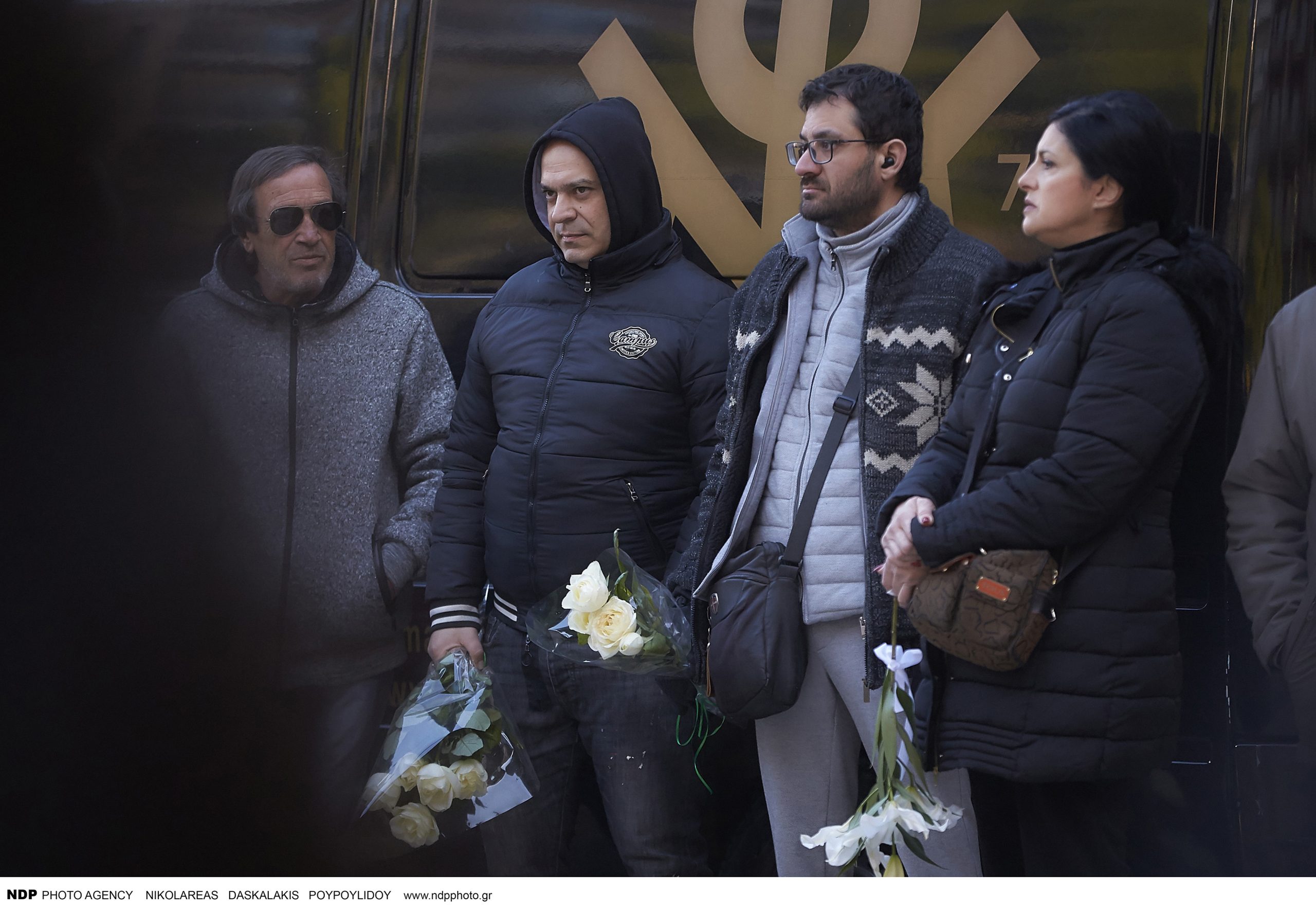 Η οικογένεια του λαϊκού τραγουδιστή έφτασε αγκαλιασμένη στον Ιερό Ναό, με τη σύζυγό του, την κόρη του και τον αδερφό του, τραγικές φιγούρες, να δίνουν δύναμη ο ένας στον άλλο.