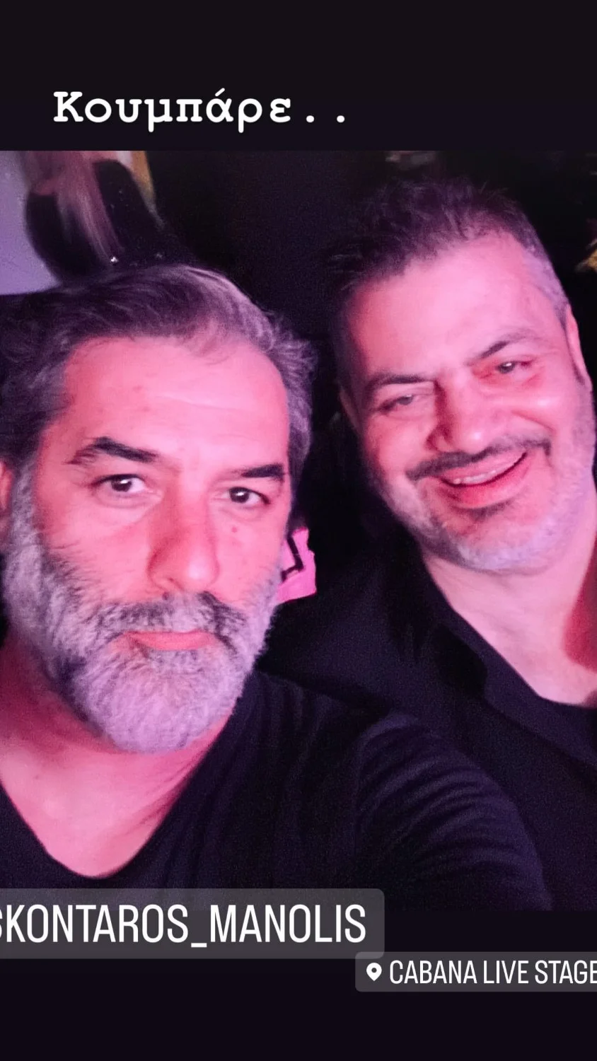 Στις σχετικές εικόνες ο ηθοποιός καταγράφεται ευδιάθετος και χαμογελαστός να διασκεδάζει, ενώ, όπως αποκαλύπτει το σχετικό story του, μετά τον Μανώλη Κονταρό, βρέθηκε και στο νυχτερινό κέντρο όπου εμφανίζεται η σύντροφός του, Δέσποινα Βανδή.