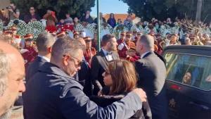 Η σορός του δημοφιλούς τραγουδιστή έφτασε λίγο πριν τις 12 στον Ιερό Ναό Αγίου Νέστορος. Το «παρών» στο τελευταίο αντίο δίνουν από το πρωί πάρα πολλοί φίλοι αλλά και καλλιτέχνες που αγάπησαν τη βαριά και γεμάτη από συναίσθημα φωνή του.