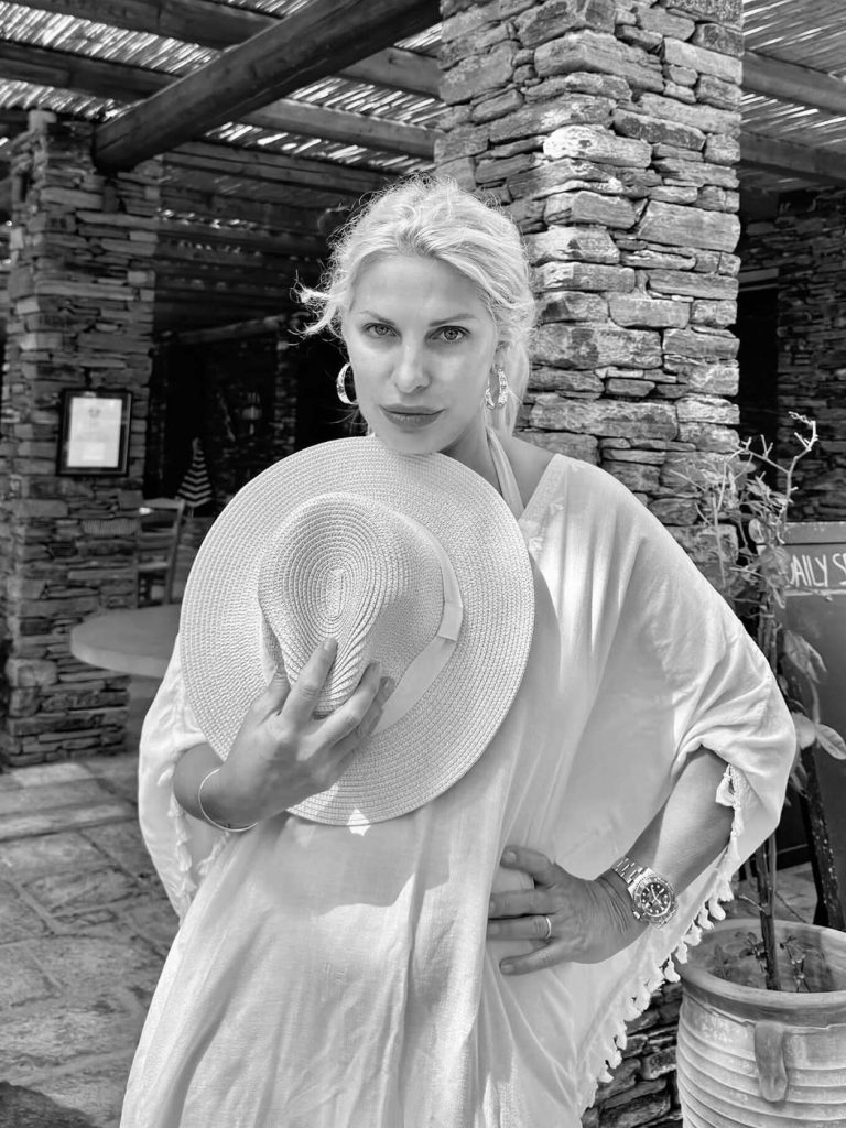 Την Τετάρτη 20 Αυγούστου μοιράστηκε με τους ακολούθους της εικόνες της, φορώντας μαγιό και ένα λευκό καφτάνι, ενώ χαμογελούσε στον φακό κρατώντας ένα ψάθινο καπέλο.