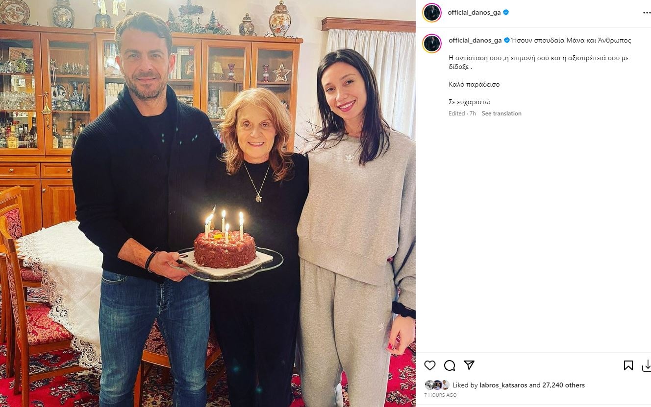 «Μάνα μου. Όπως τόσα χρόνια έτσι και φέτος πάλεψες κυριολεκτικά με το θάνατο άλλους εννιά μήνες. Μόνο εσύ ξέρεις πως έφτασες ως εδώ. Αφού μας ευχήθηκες και είδες ότι έγινε ο γάμος μας τότε ηρέμησες. Σήμερα μου είπανε πως έφυγες. Δεν έφυγες γιατί θα σε φέρω πάντα μαζί μου. Σε ευχαριστώ που είμαι γιος σου. Καλό παράδεισο μάνα μου», έγραψε χαρακτηριστικά σε instastory του.