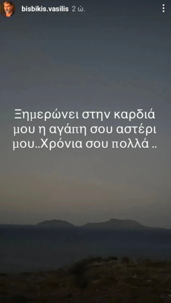 Πιο συγκεκριμένα, ο Βασίλης Μπισμπίκης ανέβασε ένα story για τη σύντροφό του στον προσωπικό του λογαριασμό στο Instagram.