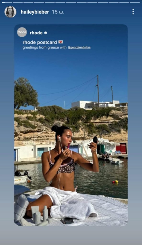 Η Χέιλι Μπίμπερ ταξίδεψε στην Ελλάδα για τη νέα καμπάνια του επιτυχημένου brand ομορφιάς της, Rhode, με φόντο τα γαλάζια νερά και τα μαγικά τοπία της Μήλου.
