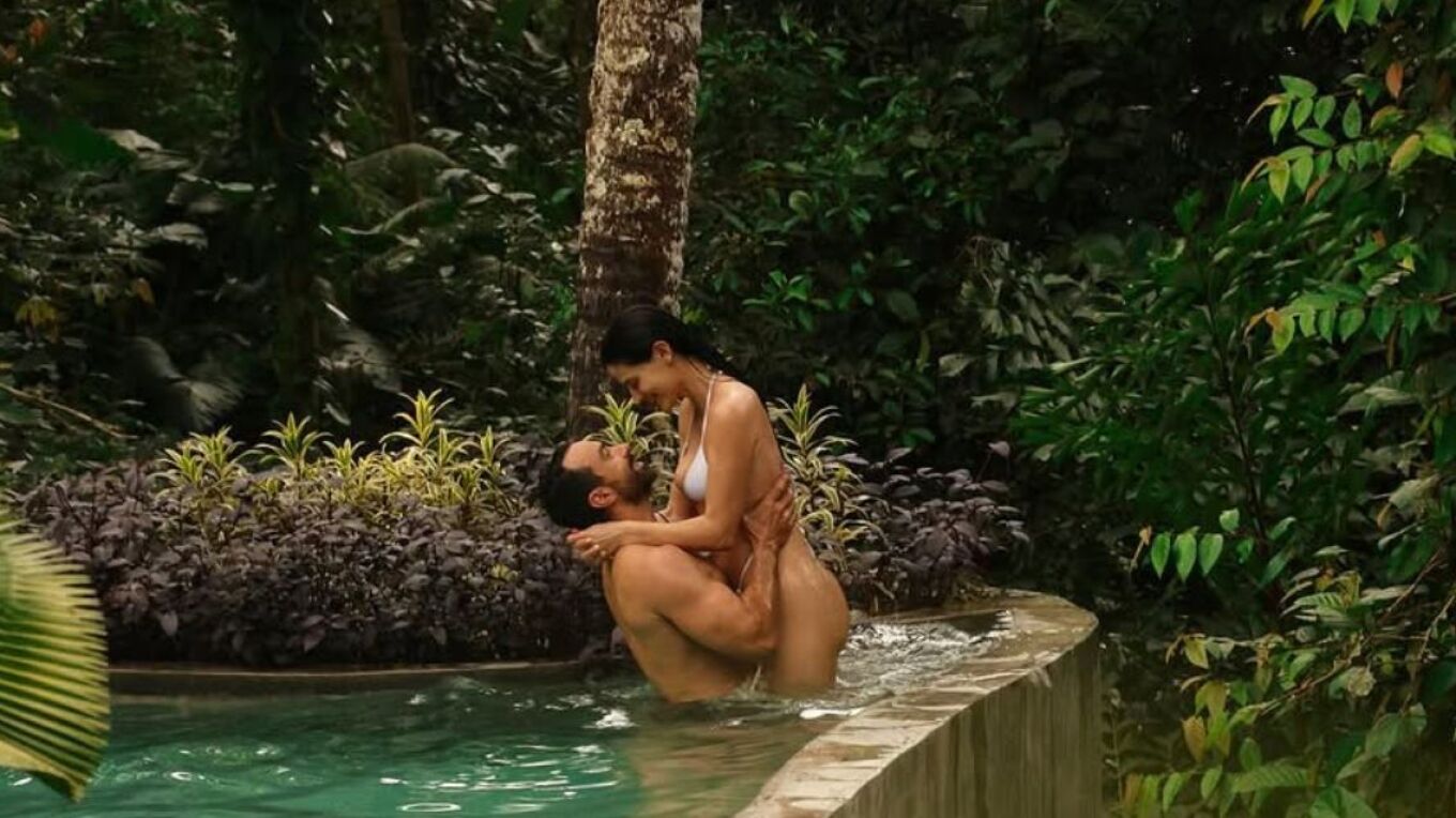 Σε αυτή, δημοσίευσε δύο φωτογραφίες με τον Σάκη Τανιμανίδη και την ίδια να ποζάρουν μέσα σε μια πισίνα, σε ένα καταπράσινο τοπίο.
