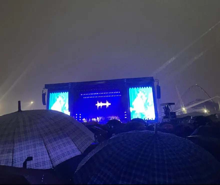 Παρότι οι παραπάνω προβλέψεις δεν επιβεβαιώθηκαν και ενώ από νωρίς το απόγευμα ισχυρή βροχόπτωση και κεραυνοί έπλητταν την περιοχή, οι διοργανωτές επέμεναν πεισματικά η συναυλία να γίνει έστω και με το…ζόρι.