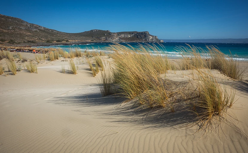 Εντυπωσιακοί χρυσαφένιοι αμμόλοφοι, μια λωρίδα γης μέσα στη θάλασσα που χωρίζει την ακτή σε δύο επιμέρους κόλπους και διαυγή, πεντακάθαρα νερά συνθέτουν την εντυπωσιακή εικόνα της ακτής, η οποία κάνει το γύρο του κόσμου.