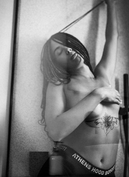 Η influencer καλύπτει με το χέρι το στήθος της, κοιτά προκλητικά τον φακό του Παναγιώτη Δελχά και αφήνει ελάχιστα στη φαντασία.