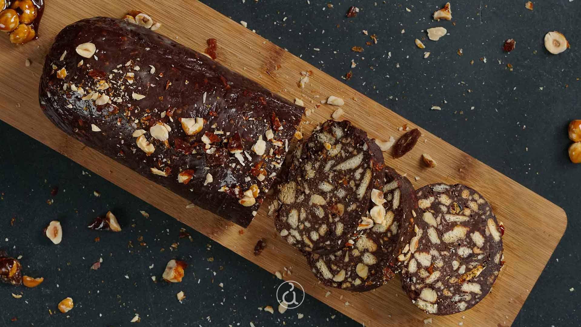 Το μωσαϊκό, ή αλλιώς κορμός, έχει σοκολατένια γεύση και τραγανή υφή σε κάθε μπουκιά χάρη στα ψιλοκομμένα μπισκότα που κρύβονται μέσα του.