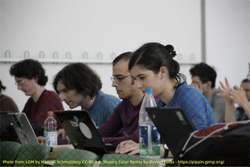 Εάν απομακρυνθείτε λιγάκι από την οθόνη, ή αν θολώσετε απαλά την όρασή σας, ίσως πιστεύετε ότι αυτή η κεντρική εικόνα (πάνω) είναι μια πλήρως έγχρωμη φωτογραφία μερικών μαθητών σε μια τάξη.