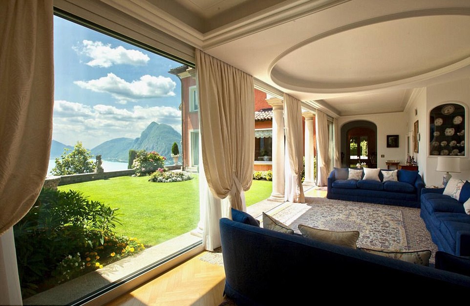 Χτισμένο στις όχθες της λίμνης Λουγκάνο το επιβλητικό ακίνητο διαθέτει μια σουίτα με μπάνιο μέσα στο υπνοδωμάτιο, κελάρι και κήπο.