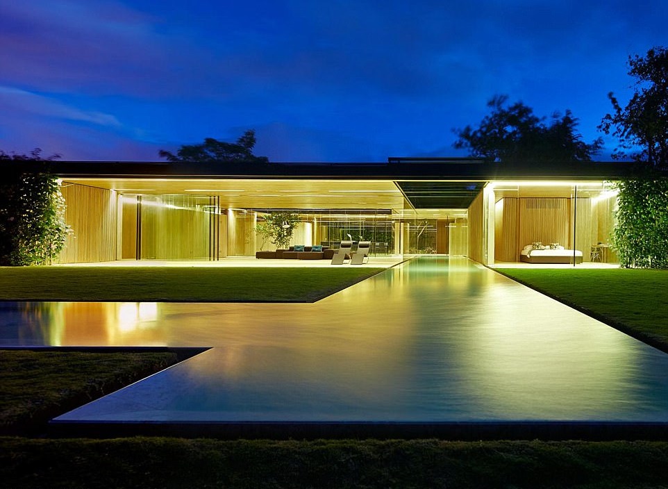 Περιλαμβάνει τέσσερα υπνοδωμάτια, μια αίθουσα θεάτρου, λιμνούλες koi και μια πισίνα.
