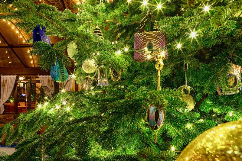 Το χριστουγεννιάτικο δέντρο, που δεσπόζει στην αίθουσα υποδοχής, είναι διακοσμημένο με κόκκινα, λευκά, ροζ και μαύρα διαμάντια, σχεδιασμένα από την Ντέμπι Γουίνγκχαμ, αξίας περίπου 15 εκατομμυρίων δολαρίων, σύμφωνα με το ξενοδοχείο. Συγκεκριμένα, επάνω στο δέντρο μπορεί να δει κανείς ροζ διαμάντια 3 καρατίων, ζαφείρι 4 καρατίων, κόκκινα οβάλ διαμάντια, μαύρα και λευκά αλλά και ένα μείγμα κοσμημάτων από διάσημους οίκους, όπως Bulgari, Cartier, Van Cleef & Arpels και Chanel.