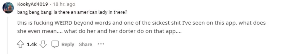 «Αυτό είναι τόσο παράξενο. Χωρίς λόγια. Η Ρίτσαρντς είναι ένας από τους πιο άρρωστους ανθρώπους που έχω δει σε αυτή την εφαρμογή», σχολίασε χρήστης στο Reddit.