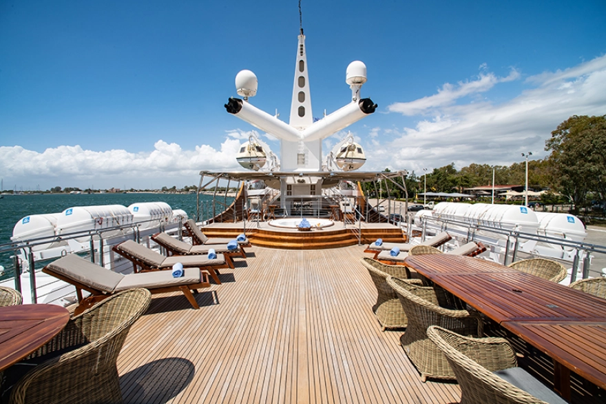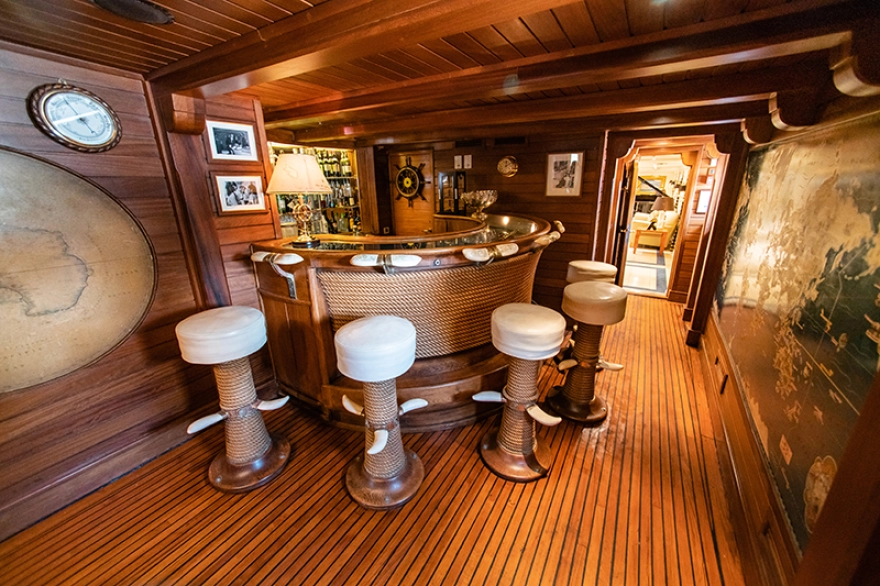 Η θαλαμηγός διαθέτει επίσης ελικοδρόμιο, γυμναστήριο, παιδότοπο, τζακούζι και χώρο μασάζ. Ενα από τα πιο εντυπωσιακά και ιστορικής σημασίας σημεία της είναι το μπαρ «Αρης», με τα φτιαγμένα από δέρμα λευκής φάλαινας περίτεχνα σκαμπό και τα χερούλια από δόντια φάλαινας, όπου είναι σκαλισμένες αναπαραστάσεις από την «Οδύσσεια» του Ομήρου.