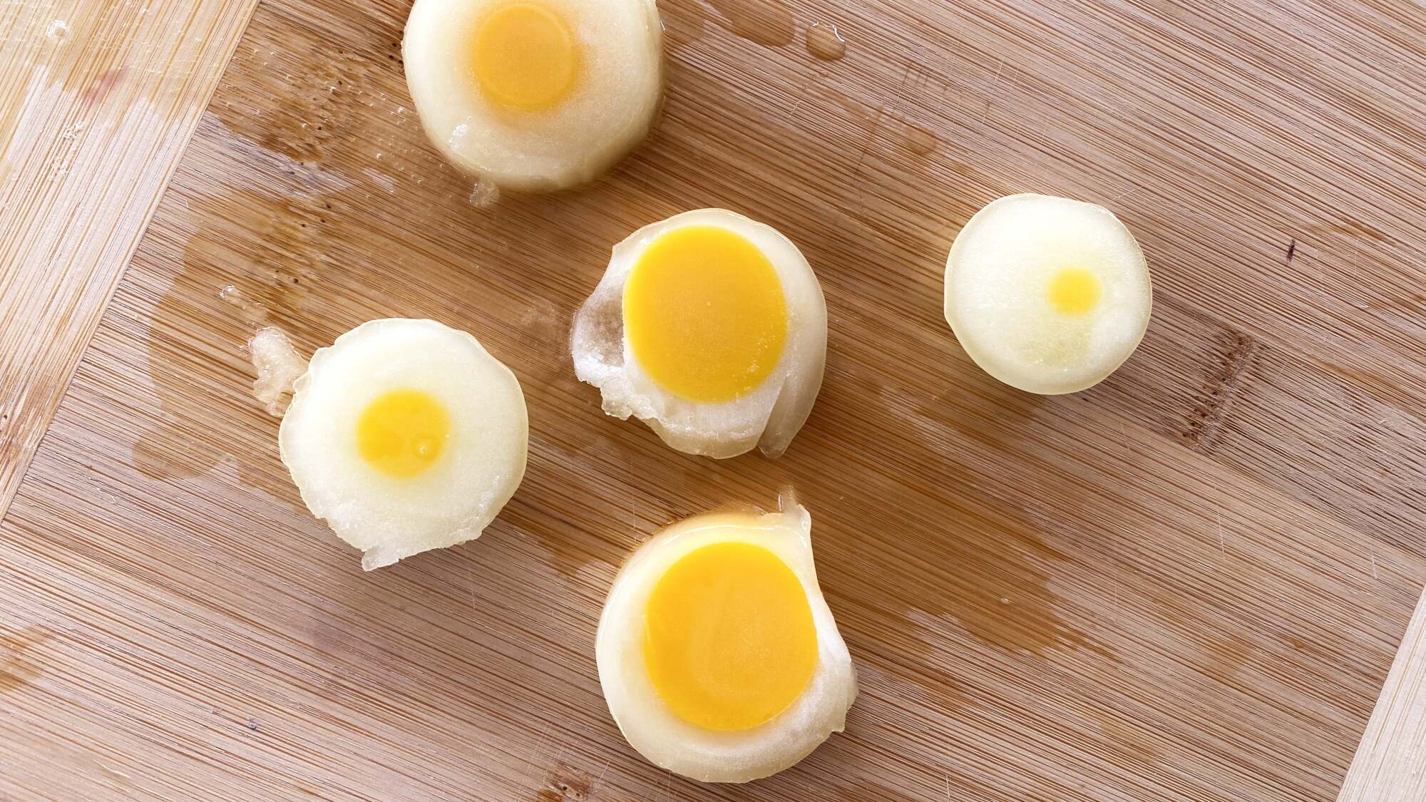 Βίντεο δείχνουν χρήστες να καταψύχουν ολόκληρα αυγά μέσα στο τσόφλι τους, να τα κόβουν στη μέση και στη συνέχεια να τα τηγανίζουν, δημιουργώντας μικροσκοπικά και «χαριτωμένα», όπως τα χαρακτηρίζουν αυγά.