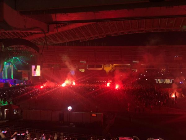 Το σκηνικό λίγο-πολύ γνωστό. Παρόλο τον έλεγχο στην είσοδο και τις προειδοποιήσεις, τα καπνογόνα δεν έλειψαν και από αυτή την συναυλία.