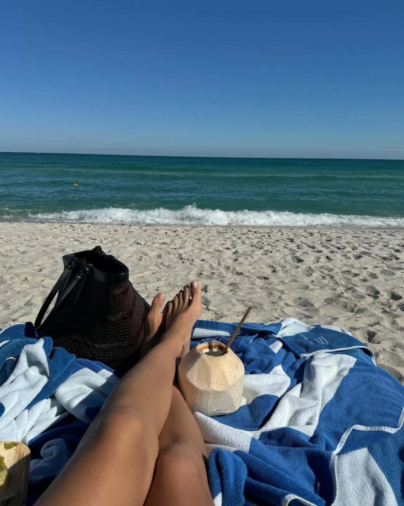Όπως φαίνεται, στην πρώτη δημοσίευση, η Ιρίνα Σάικ φαίνεται ξαπλωμένη σε ένα κρεβάτι μασάζ, φορώντας το μαγιό της κι έχοντας πάνω στο κεφάλι της κάτι που μοιάζει με φύλλα δέντρου.