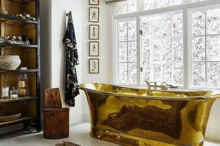 Εκτός από την εντυπωσιακή μπανιέρα, το μπάνιο της διαθέτει επίσης και μία καμπίνα ντους με ατμό, διακοσμημένη με ευκάλυπτο.