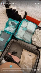 Όπως είπε στο βίντεο που δημοσίευσε: «Ήρθε η ώρα αυτή που φτιάχνω τη βαλίτσα του μαιευτηρίου. Τα έχω σχεδόν όλα έτοιμα, ρουχαλάκια του μωρού, πανάκια, πιτζάμες και όλα αυτά. Αυτά που θα χρειαστώ εγώ μαζί μου, κάποιες ειδικές κρέμες, σαμπουάν, αποσμητικά κλπ, εσώρουχα, παντόφλες, χτένα για τα μαλλιά, φακούς, γυαλιά κλπ. Νομίζω ότι είμαι έτοιμη. Όποτε θελήσει ο μπέμπης είμαστε πανέτοιμοι.Τώρα ναι».