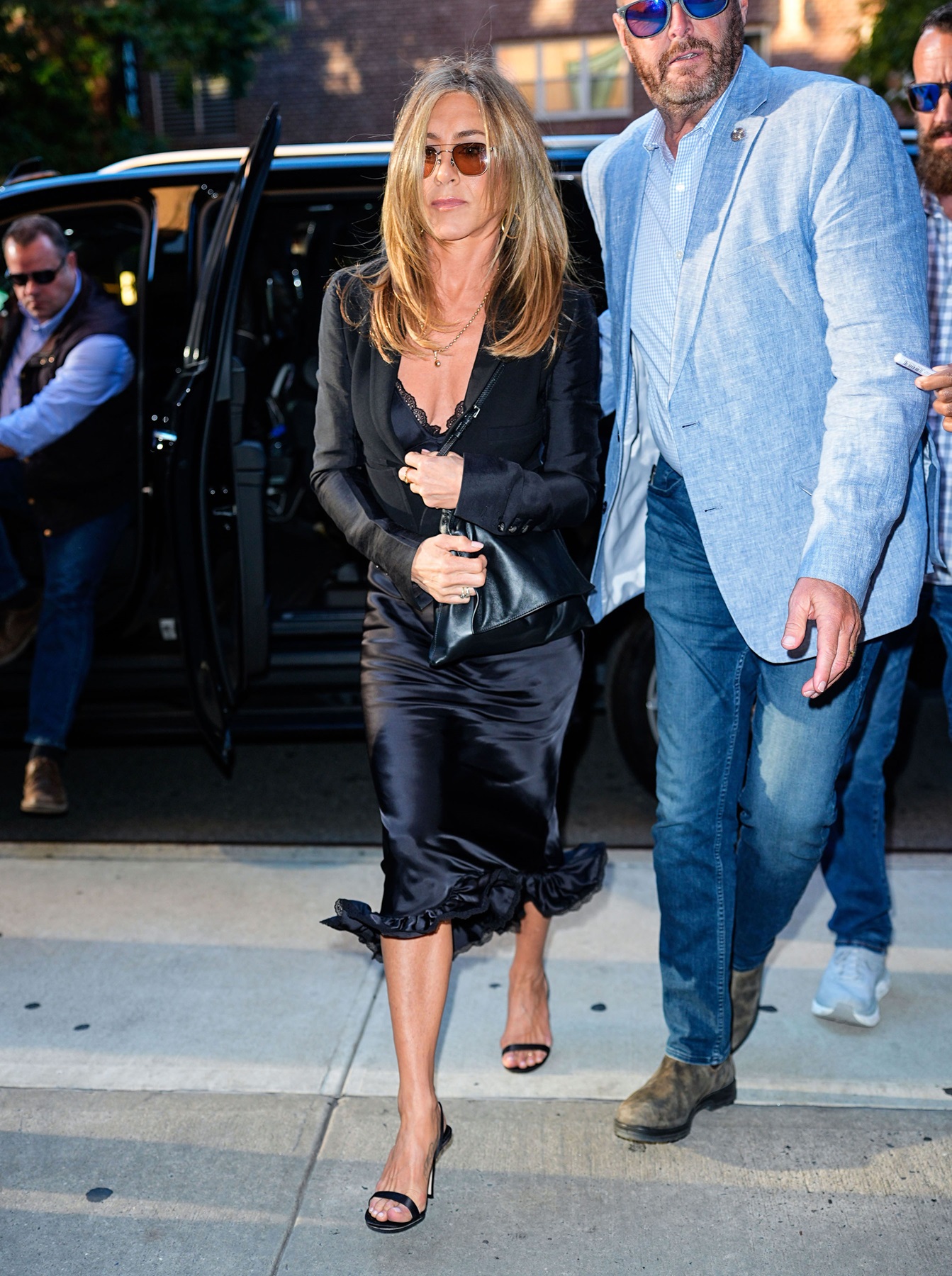 Η Jennifer Aniston εντυπωσίασε με μαύρο slip dress στη Νέα Υόρκη