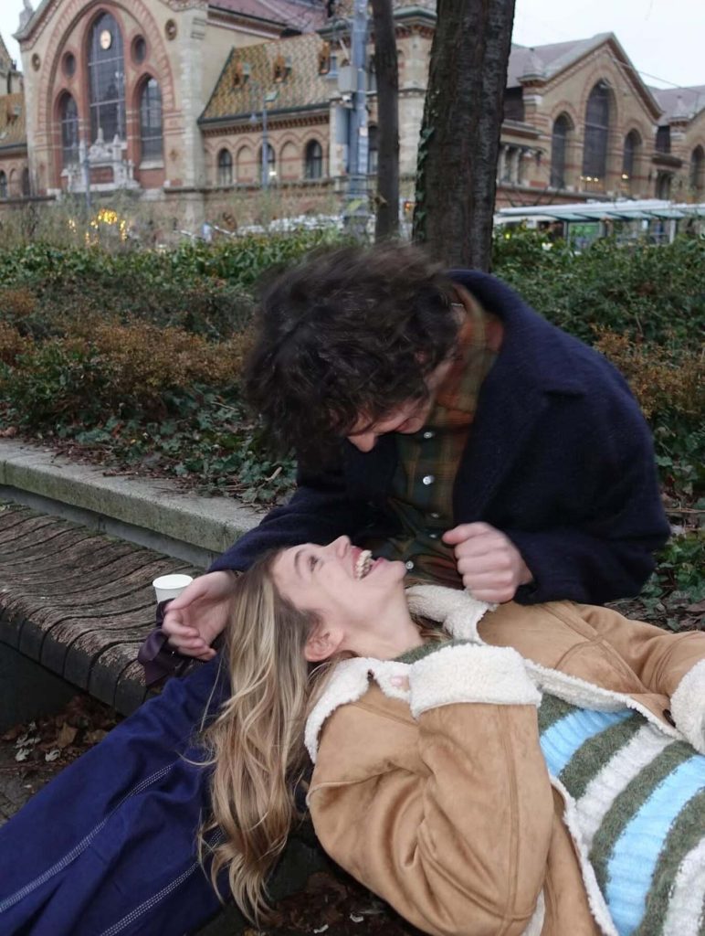 Στα στιγμιότυπα που δημοσίευσε εκείνη και ο πρωταγωνιστής αλλά και δημιουργός της σειράς ποζάρουν σε δρόμους της πόλης, άλλοτε πάνω σε ένα ποδήλατο και άλλοτε σε μια χριστουγεννιάτικη αγορά.