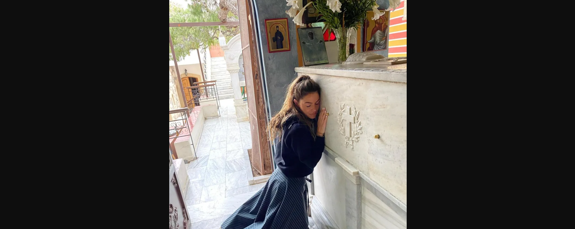 Σε δημοσίευση που έκανε στον προσωπικό της λογαριασμό, εξήγησε πως ήθελε να ευχαριστήσει τον Άγιο, τον οποίο θεωρεί προστάτη της οικογένειάς της για τα «θαύματα και τις θεραπείες», με τις οποίες τους ευλόγησε.